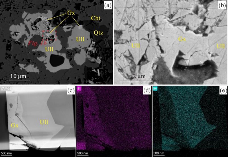 矿藏缩写:石英-Qtz,辉砷钴矿-Cbt,硫锑镍矿-Ull,贵祥镍铋矿-Gx