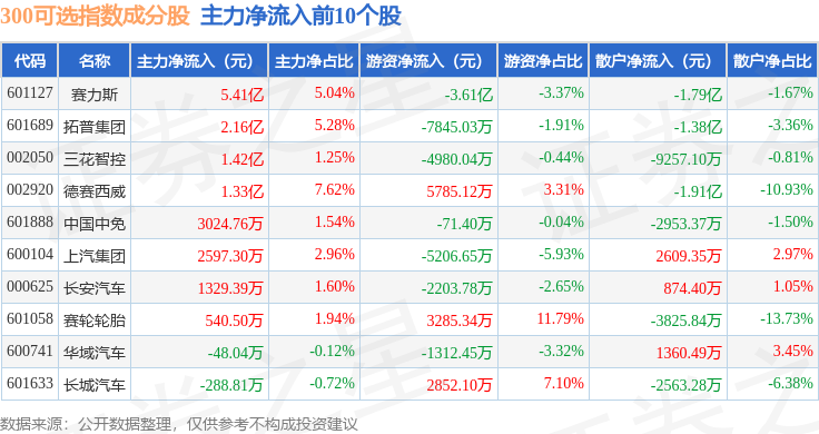 9月30日300可选(000911)指数涨074%成份股赛力斯(601127)领涨